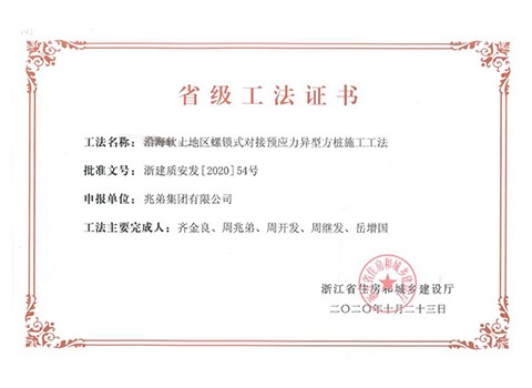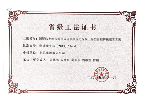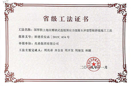 <p style="text-indent: 2em;"><span style=";font-family:微軟雅黑;font-size:14px"><span style="font-family:微軟雅黑"></span></span>公司擁有“無(wú)端板連節(jié)式竹筋管樁施工工法”“沿海軟土地區(qū)螺鎖式對(duì)接預(yù)應(yīng)力異型方樁施工工法”、“裝配式螺鎖連接異型管樁智慧植樁施工工法”、“預(yù)應(yīng)力混凝土離心樁無(wú)剪切快速?gòu)?qiáng)拉對(duì)接施工工法”、“無(wú)端板連接式竹筋管樁施工工法”、“機(jī)械連接預(yù)應(yīng)力混凝土竹節(jié)樁施工工法”、“深厚軟土地區(qū)螺鎖式連接預(yù)應(yīng)力混凝土異型管樁拼接施工工法”、“軟土地區(qū)螺鎖式連接剛?cè)峤M合樁施工工法”等8項(xiàng)國(guó)家級(jí)、省級(jí)工法技術(shù)。</p><p style="text-indent: 2em;"><br/></p>